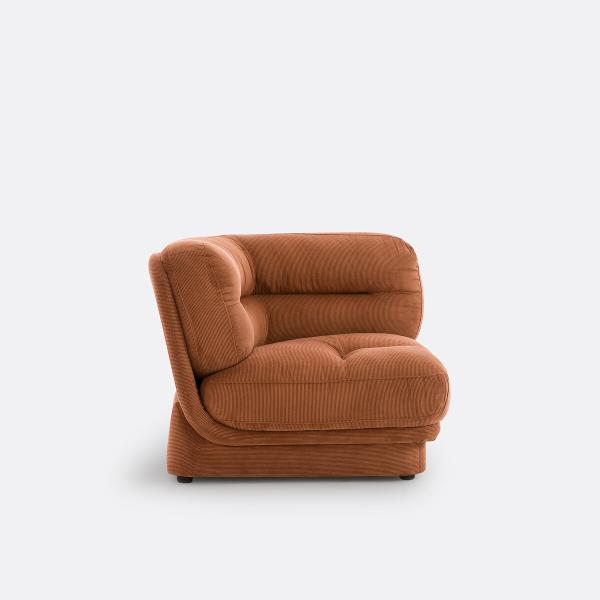 Mélange de lignes droites et d'arrondis, revêtement velours côtelé, coloris vintage... Jonas donne le ton, avec style. Son plus ? Modulable, il permet de réinventer le salon à volonté. À vous de jouer.