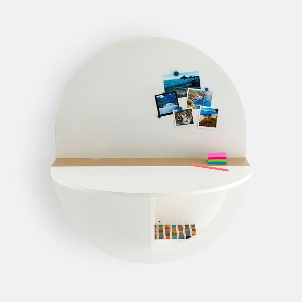 Vous avez besoin d’un bureau et vous n’avez pas beaucoup de place ? Voici le bureau mural Anzio, au design tout en rondeur, inspiré des années 60. Astucieux, il est rabattable : idéal pour gagner de la place dans les petits espaces.