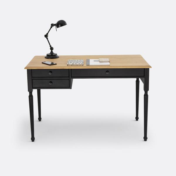 Bureau pin massif Authentic Style Noir/bois T. Unique