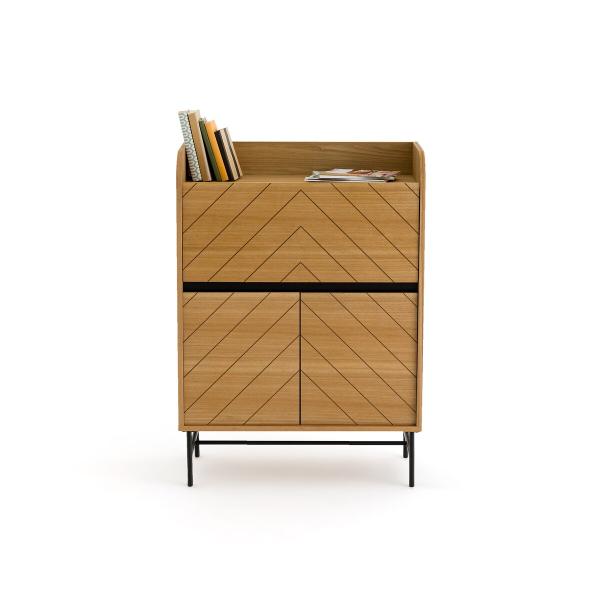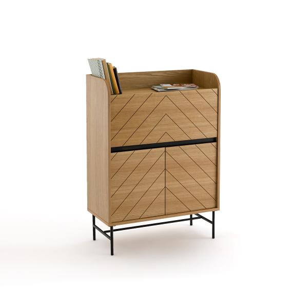 Compact et fonctionnel. Voici Cameron, le bureau secrétaire revisité façon parquet chevron. Son plateau se déplie et propose un bel espace de travail. Une fois fermé, il mettra à l’abri des regards vos documents et autres objets personnels.Ni vu ni connu !