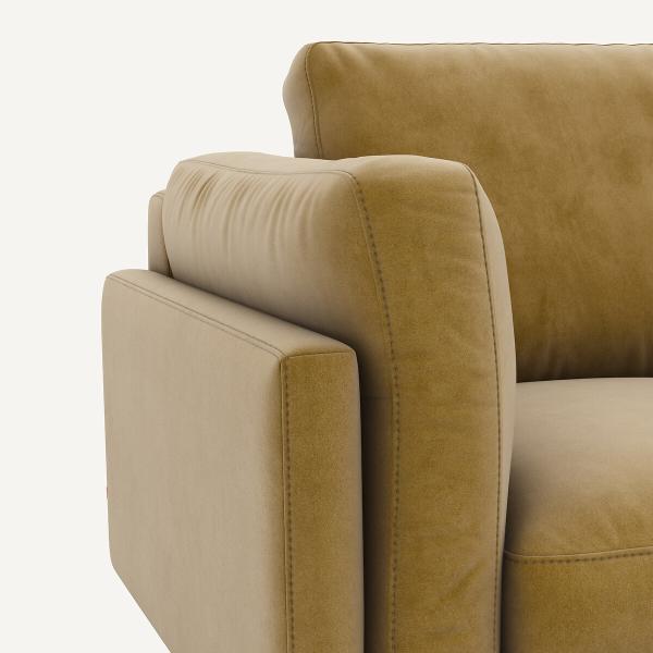 César, se caractérise par une ligne contemporaine, intemporelle, simple et élégante.Son coussin se dépose délicatement sur l'accoudoir et son garnissage généreux offre une grande expérience de confort. Les belles proportions, l'esthétique légère et épurée de ce canapé sont soulignés par deux pieds transversaux ce qui lui donnent l’impression de flotter dans l’air.