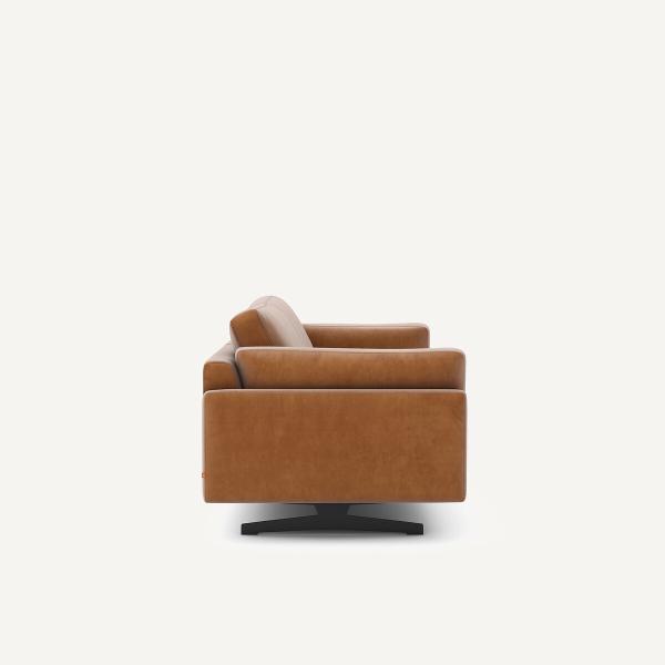 Fabrication Italienne. César, se caractérise par une ligne contemporaine, intemporelle, simple et élégante. Son coussin se dépose délicatement sur l'accoudoir et son garnissage généreux offre une grande expérience de confort.Les belles proportions et l'esthétique légère et épurée de ce canapé sont soulignées par deux pieds transversaux lui donnant l’impression de flotter dans l’air.