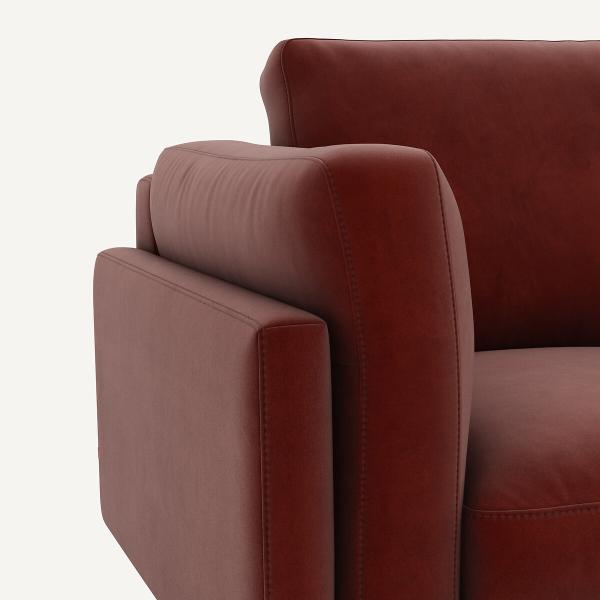 Fabrication Italienne. César, se caractérise par une ligne contemporaine, intemporelle, simple et élégante. Son coussin se dépose délicatement sur l'accoudoir et son garnissage généreux offre une grande expérience de confort.Les belles proportions et l'esthétique légère et épurée de ce canapé sont soulignées par deux pieds transversaux lui donnant l’impression de flotter dans l’air.