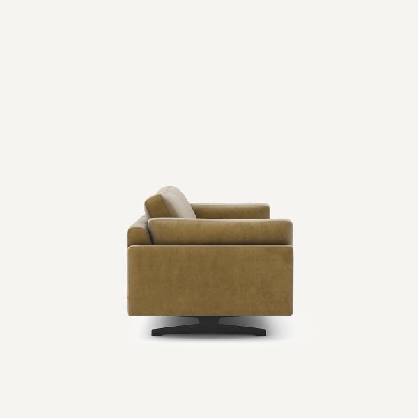 Fabrication Italienne. César, se caractérise par une ligne contemporaine, intemporelle, simple et élégante. Son coussin se dépose délicatement sur l'accoudoir et son garnissage généreux offre une grande expérience de confort.Les belles proportions et l'esthétique légère et épurée de ce canapé sont soulignées par deux pieds transversaux lui donnant l’impression de flotter dans l’air.