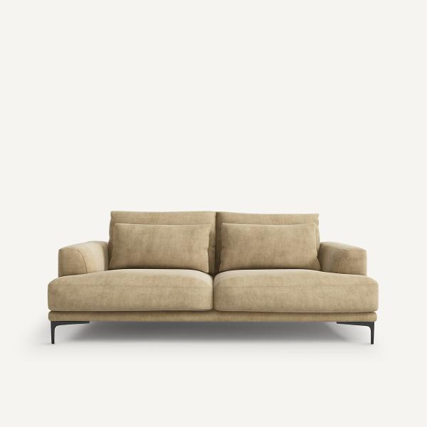 Canapé 3 places velours stonewashed, Marsile Ficelle 3P