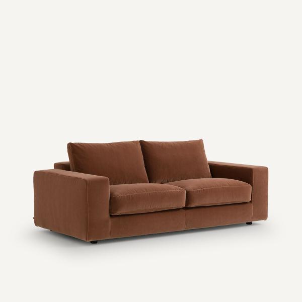 Canapé 3P compact velours, Skander Terre cuite 3P