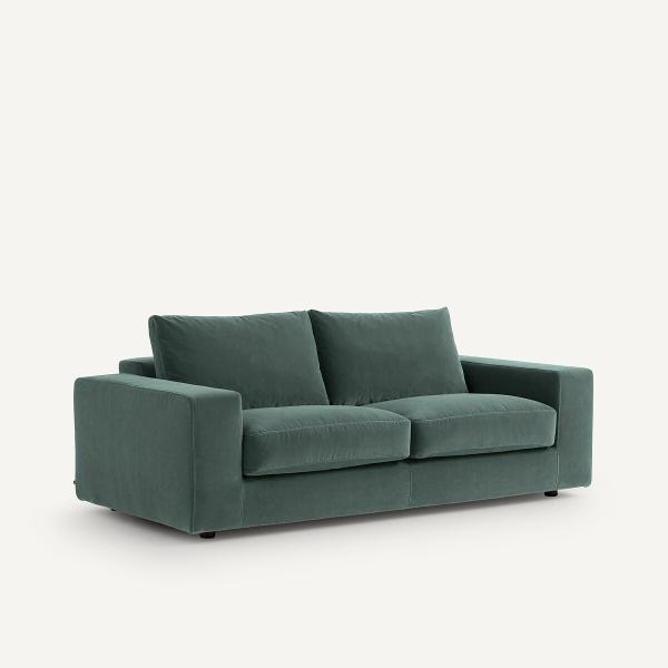 Canapé 3P compact velours, Skander Vert cèdre 3P