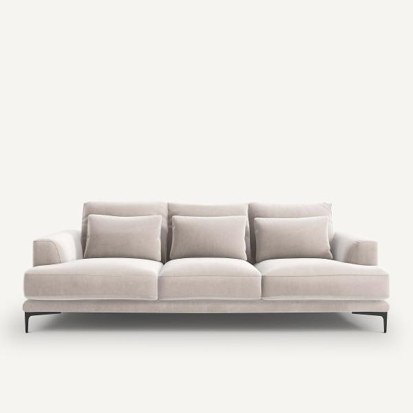 Le canapé Marsile est l’alliance parfaite d’une architecture aux proportions harmonieuses et de matériaux de grande qualité.Détaché du sol par de fins pieds en acier verni, le canapé Marsile se distingue par ses coussins d'assise marteaux et par l’opulence de ses coussins généreux et moelleux, pour créer un univers propice à la quiétude.