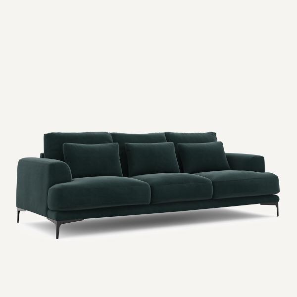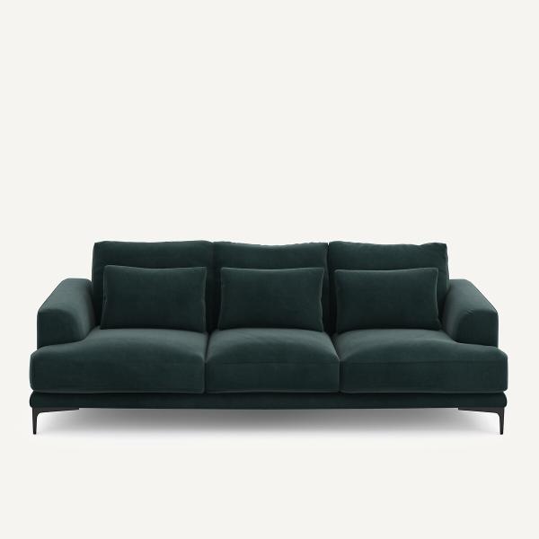 Canapé 4 places velours, Marsile Vert cèdre 4P