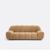 ""Le canapé Nuria s’inspire des codes emblématiques des années 70 avec son assise basse posée à même le sol et son allure généreusement moelleuse. Un jeu de coutures dessine une alternance de volumes rebondis et de courbes, évoquant un effet de boudins, qui rappelle l’esthétique enveloppante et le confort douillet des intérieurs seventies.""