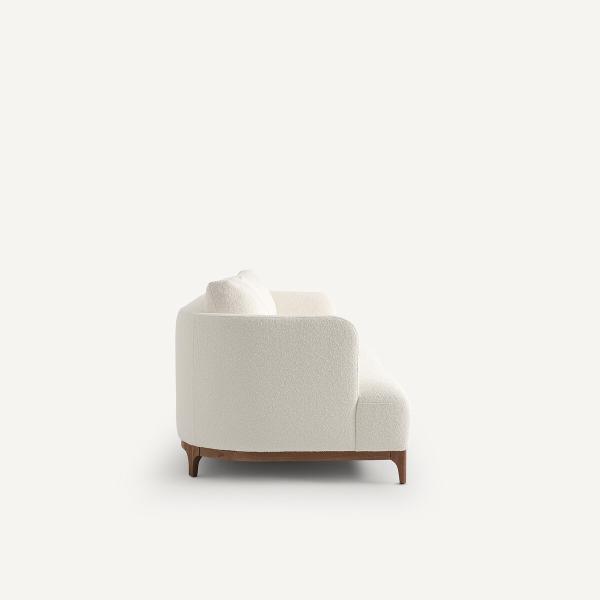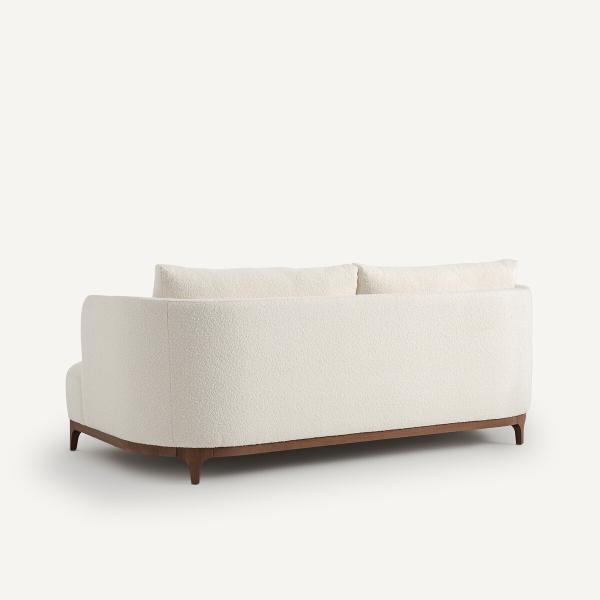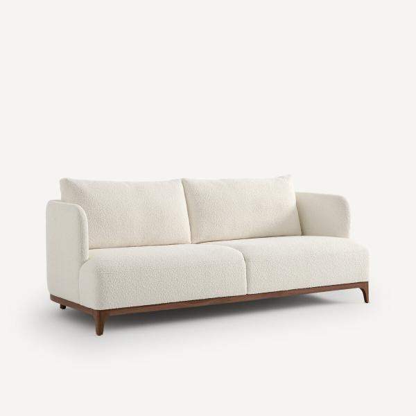Canapé compact bouclette, pieds noyer, Jabote Blanc 3P