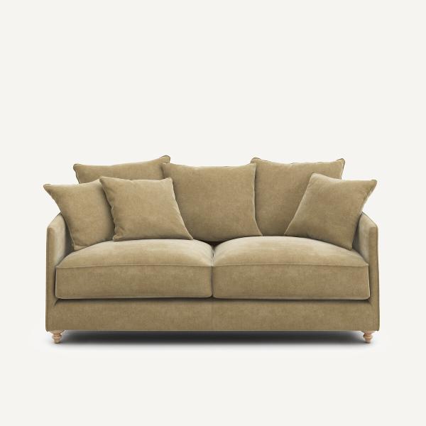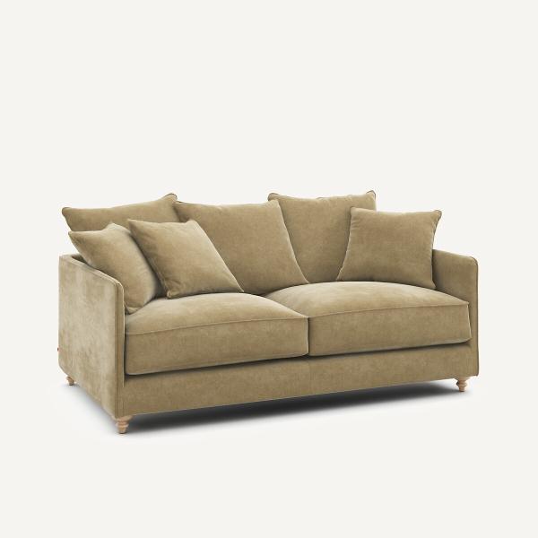 Canapé compact conv. velours stonewashed, Lazare Ficelle 3P