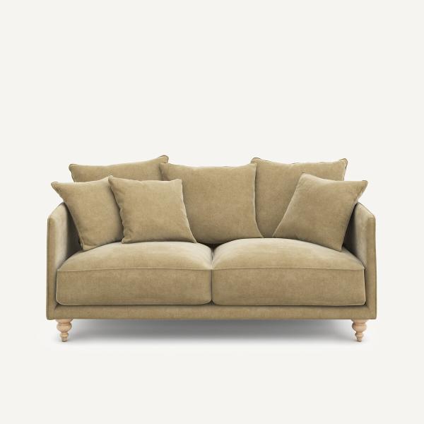 Canapé compact en velours stonewashed, BOTERO Ficelle 3P