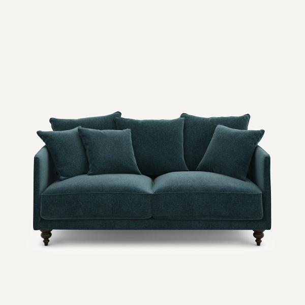 Canapé compact velours chenille, Lazare Vert sarcelle 3P