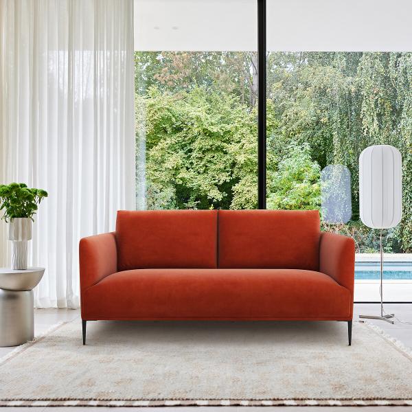 Canapé compact velours, Oscar Rouge cinabre 3P