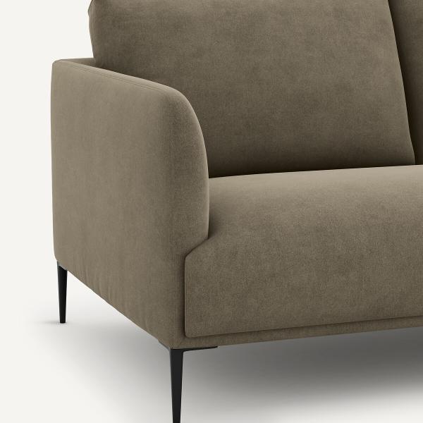 Canapé compact velours stonewashed, Oscar Gris shiitaké 3P
