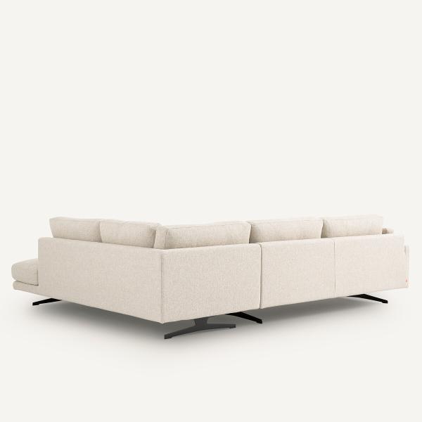 - Assise (4 coussins) : mousse polyuréthane 35 et 23 kg/m³, percale garnie de plumes d'oie et fibres polyester pour un accueil moelleux.