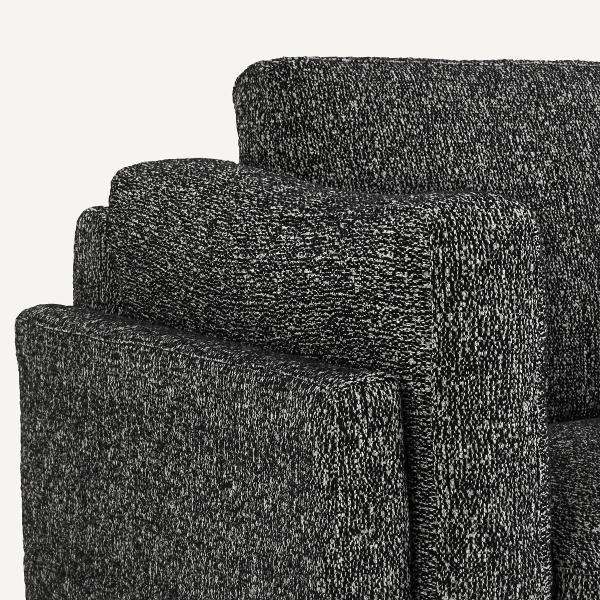 - Coussin d’accoudoir (2 coussins) : mousse polyuréthane 40kg/m³, fibres polyester et flocons de mousse polyuréthane