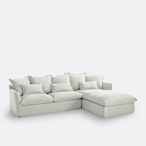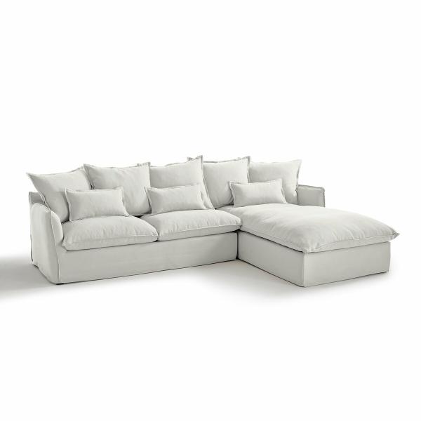 Canapé d'angle coton lin, Odna Blanc Gauche