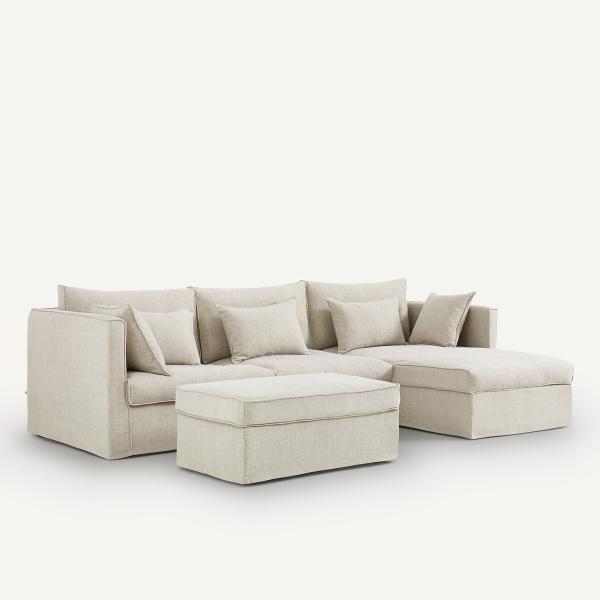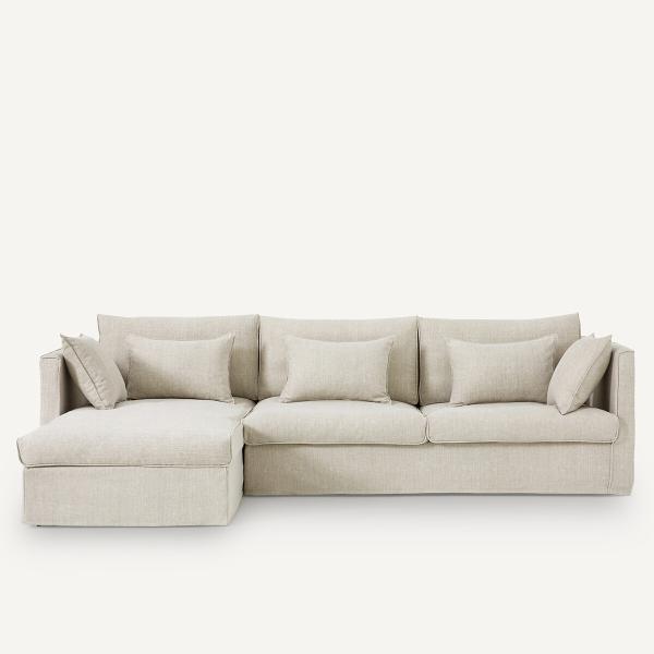 Canapé d'angle coton/lin, Camille Beige Droit