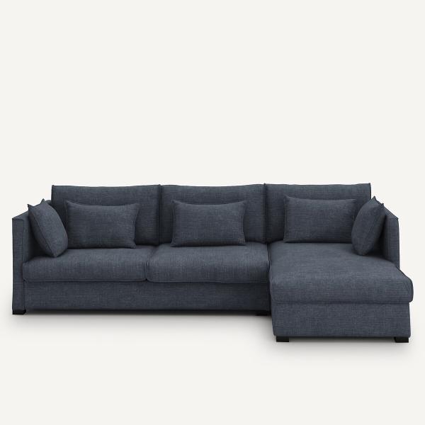 Canapé d'angle coton/lin, Camille Bleu nuit Droit