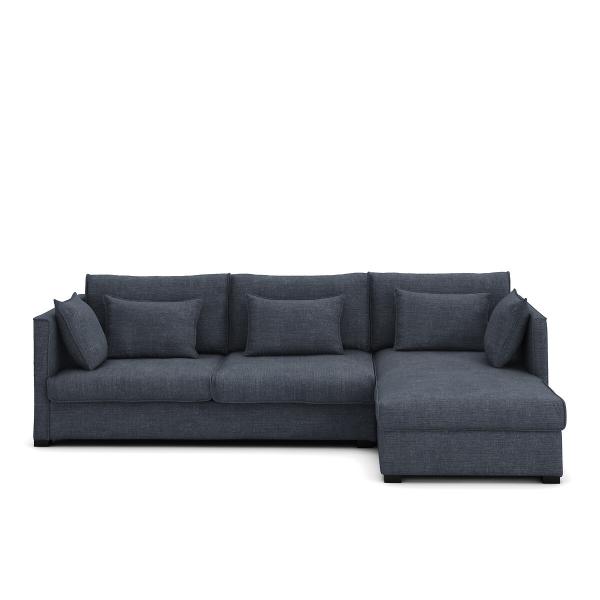 Canapé d'angle coton/lin, Camille Bleu nuit Gauche