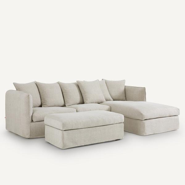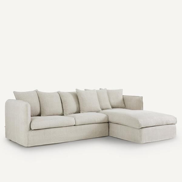 Canapé d'angle coton/lin, Néo Chiquito Beige Droit