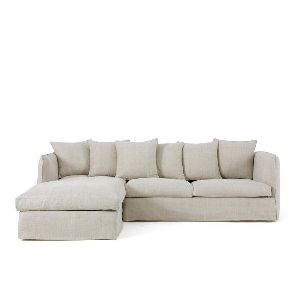 Canapé d'angle coton/lin, Néo Chiquito Bleu nuit Gauche