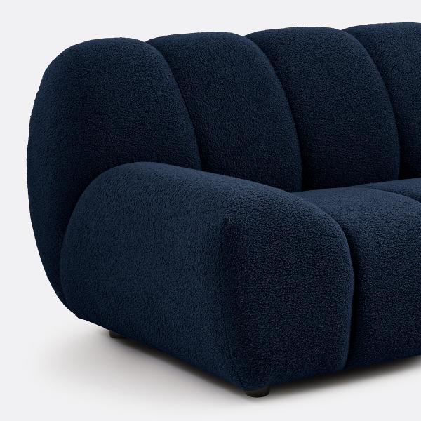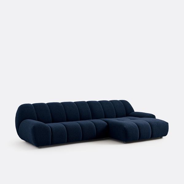 Canapé d'angle droit, bouclette épaisse, Nuria Bleu Droit