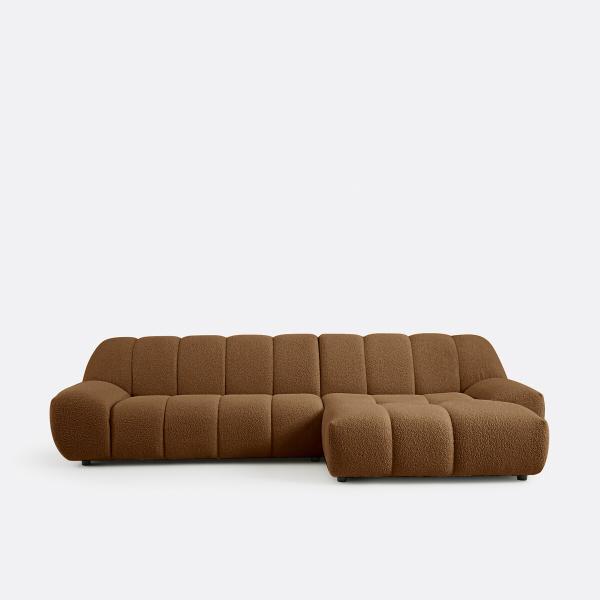 Canapé d'angle droit, bouclette épaisse, Nuria Chocolat Droit