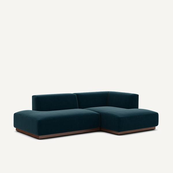 Canapé d'angle droit velours, Jacopo Bleu paon Droit