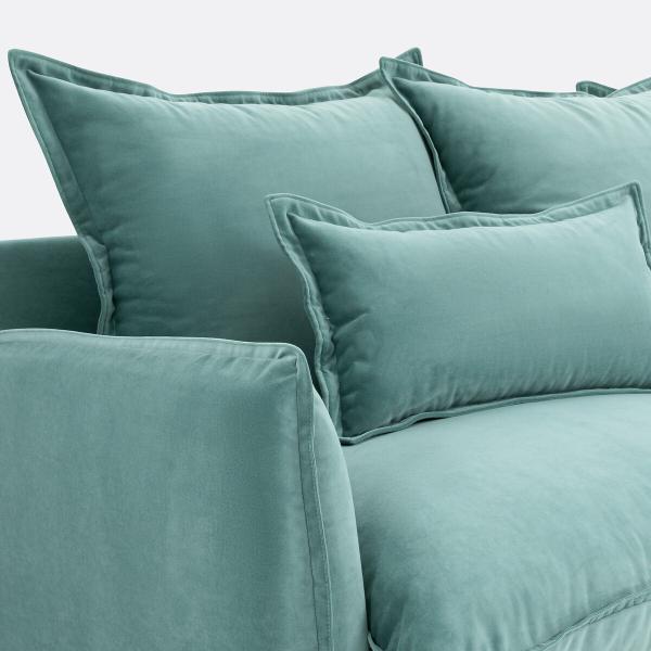 Canapé d'angle droit velours, Odna Bleu céladon Droit