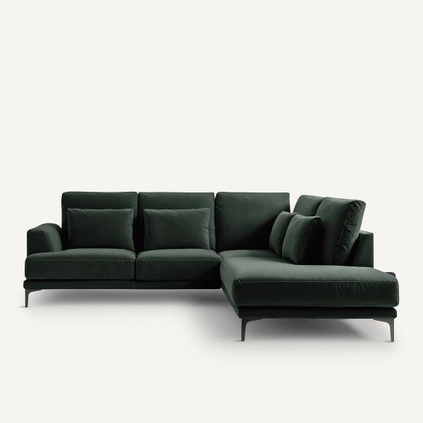 Canapé d'angle fermé velours, Marsile Vert tsar Droit