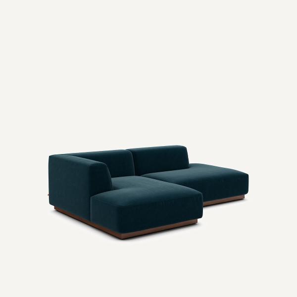 Canapé d'angle gauche velours, Jacopo Bleu paon Gauche