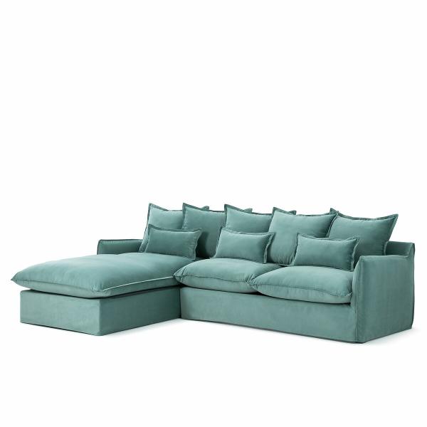 Canapé d'angle gauche velours, Odna Bleu céladon Gauche