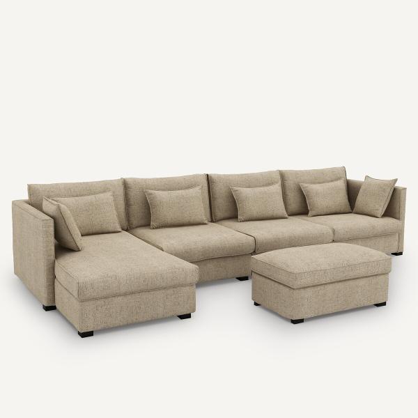 Canapé d'angle lin moucheté, Camille Naturel Droit