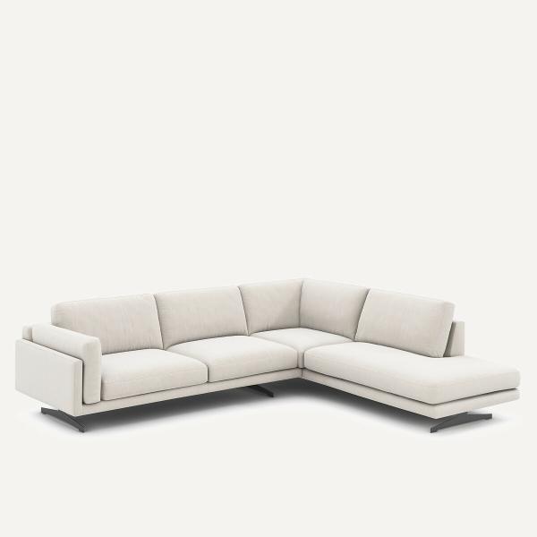 Canapé d'angle méridienne velours chenille, César Blanc Droit