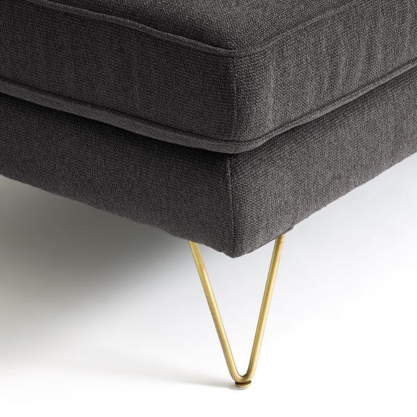 - Coussins d’assise (3 coussins) : mousse polyuréthane HR 35kg/m³ Toniflex recouverte de ouate polyester 240g/m².