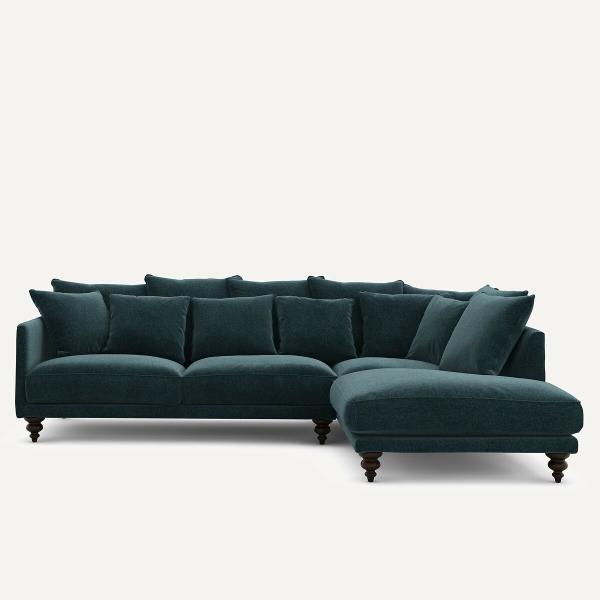 Canapé d'angle velours chenille, Lazare Vert sarcelle Gauche