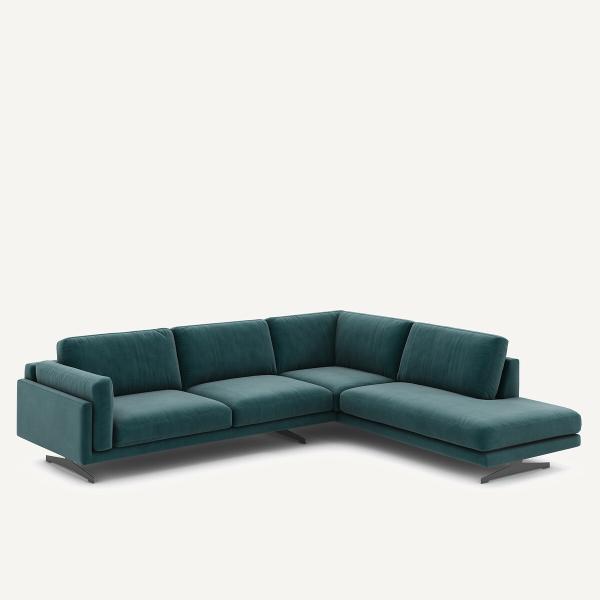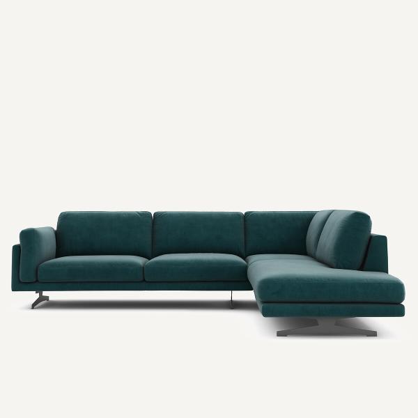 Canapé d'angle velours, César Bleu de sarcelle Gauche