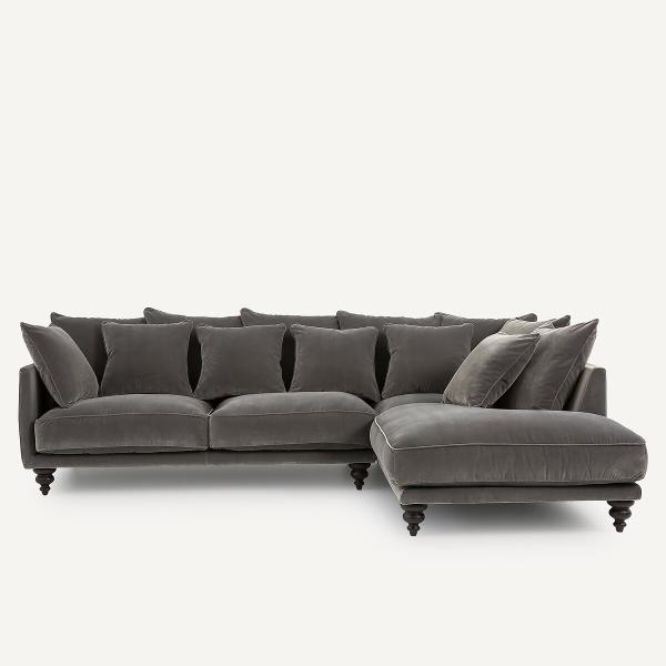 Canapé d'angle velours, Lazare Bleu nuit Droit