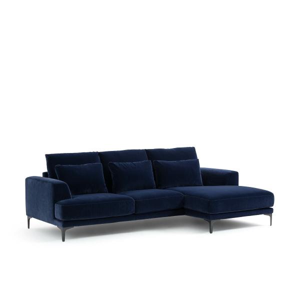 Canapé d'angle velours, Marsile Bleu nuit Droit