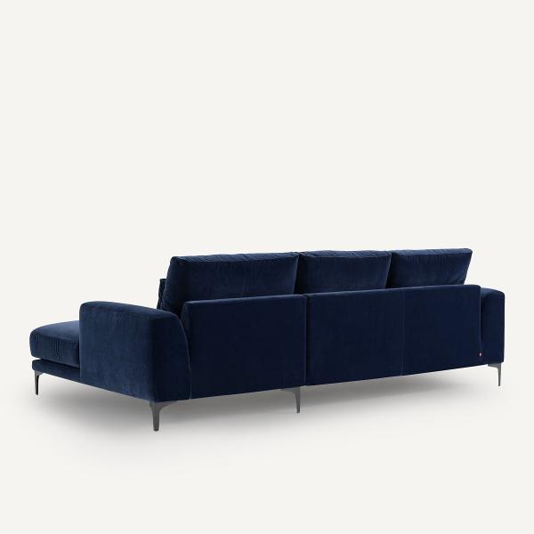 Canapé d'angle velours, Marsile Bleu nuit Gauche