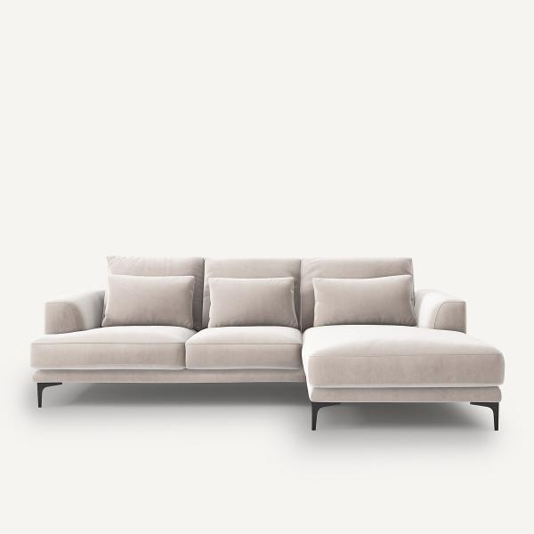 Canapé d'angle velours, Marsile Gris tourterelle Droit