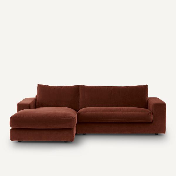 Canapé d’angle velours, Skander Terre cuite Droit