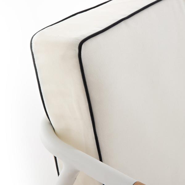 - Revêtement coussins Olefin 100% polyester, coloris blanc, finition piping coloris noir