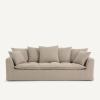 - Dossier (4 coussins pour le 3 places, 5 coussins pour le 4 places) : plumes d’oie, fibre polyester et flocons de polyuréthane