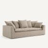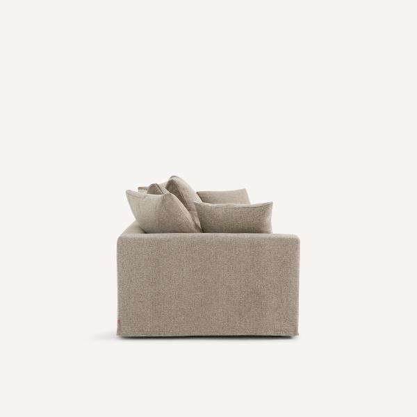 - Dossier (4 coussins pour le 3 places, 5 coussins pour le 4 places) : plumes d’oie, fibre polyester et flocons de polyuréthane