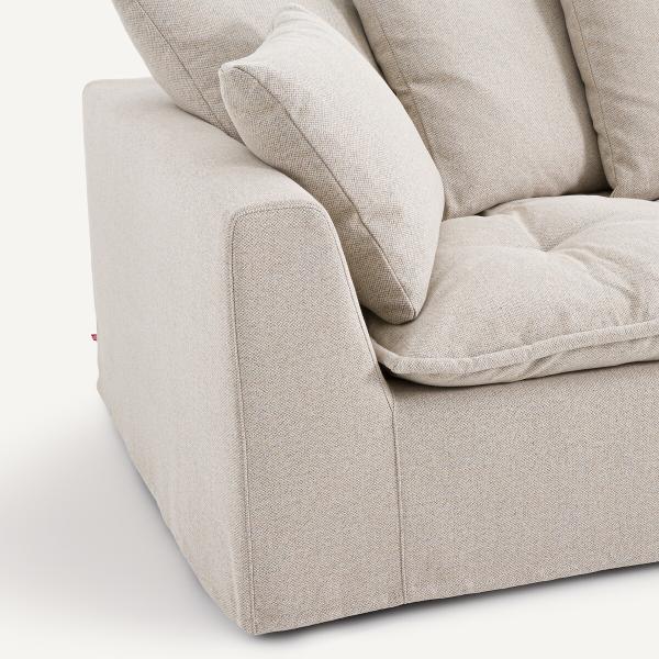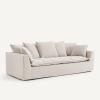 - Dossier (4 coussins pour le 3 places, 5 coussins pour le 4 places) : plumes d’oie, fibre polyester et flocons de polyuréthane