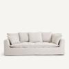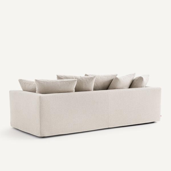 - Dossier (4 coussins pour le 3 places, 5 coussins pour le 4 places) : plumes d’oie, fibre polyester et flocons de polyuréthane